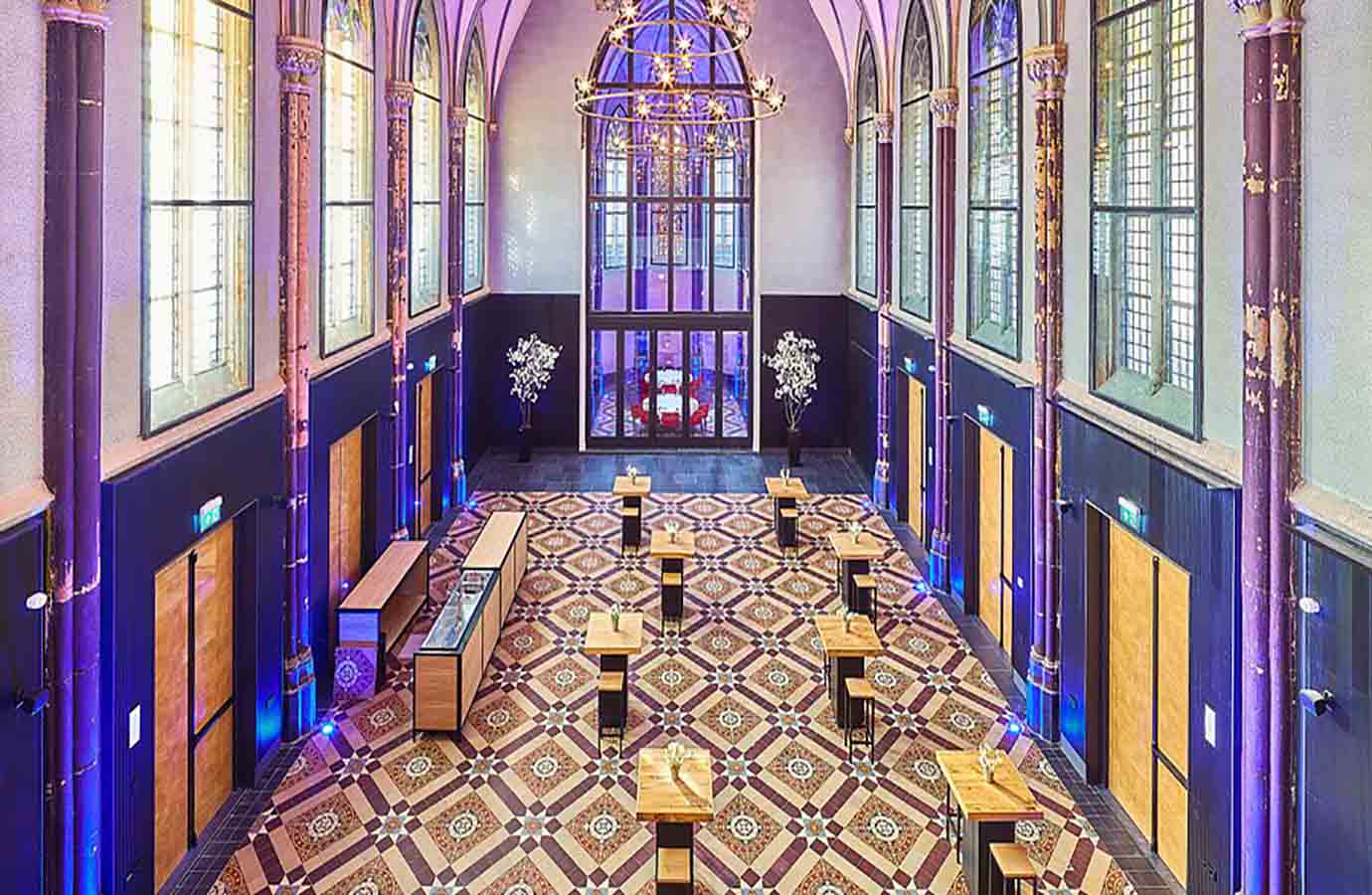 De lobby is elegant ingericht met respect voor het verleden: hoge plafonds, glas-in-loodramen en zorgvuldig bewaarde details uit de kloostertijd. Tegelijkertijd voelt alles modern aan. Het contrast tussen oud en nieuw is tot in de puntjes verzorgd.